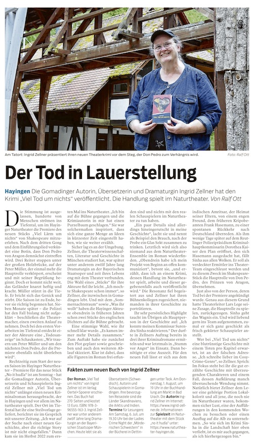 Den Schauplatz ihres neuen Krimis „Viel Tod um nichts“ kennt die Autorin Ingrid Zellner sehr genau, ist sie doch selbst ein Mitglied des Ensembles, das das Naturtheater Hayingen am Laufen halten. Die Vorfälle und Figuren der Geschichte sind natürlich frei erfunden.